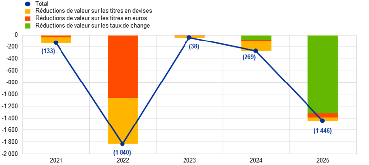 50. À l’exception des actions reçues par une BCN de l’Eurosystème en 2024 à la suite d’une restructuration d’entreprise, qui ont été comptabilisées à la valeur de marché. Ces titres ont été vendus en 2025.