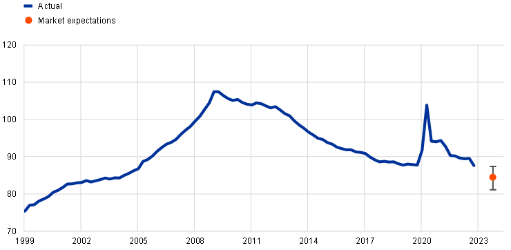 The ECB Consumer Expectations Survey suggests that euro area consumer inflation expectations have reached a turning point. Median expectations for inflation three years ahead fell to 2.5% in January 2023, from 3.0% in the previous month.