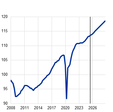 La fecha de cierre de los datos para los supuestos técnicos y para las proyecciones de la economía mundial fue el 26 de noviembre de 2025. Las proyecciones macroeconómicas para la zona del euro se finalizaron el 3 de diciembre de 2025. Las proyecciones para la zona del euro de diciembre de 2025 incluyen a Bulgaria, en vista de su incorporación a la zona del euro el 1 de enero de 2026. Los datos históricos de la zona del euro también incluyen a Bulgaria para todas las variables, excepto el IAPC.