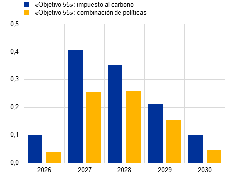 En el caso de las previsiones de la Comisión Europea, se asumía que el RCDE2 se aplicaría en 2027 y tendría un impacto al alza en la inflación de 0,3 puntos porcentuales. Otros expertos en previsión económica no explicitan sus supuestos respecto al RCDE2.