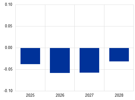 Pamatscenārijā iekļautā ietekme uz inflāciju 2025.–2028. gadā saskaņā ar aplēsēm kumulatīvi ir mazāka par 0.1 procentu punktu.