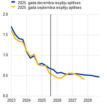 Eurosistēmas speciālistu iespēju aplēses | 2025. gada decembris | 1.4 | 1.2 | 1.4 | 1.4 | 2.1 | 1.9 | 1.8 | 2.0 | 2.4 | 2.2 | 1.9 | 2.0 | |