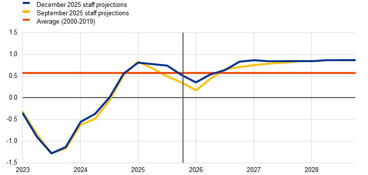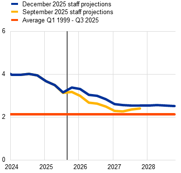 Eurosystem staff projections | December 2025 | 1.4 | 1.2 | 1.4 | 1.4 | 2.1 | 1.9 | 1.8 | 2.0 | 2.4 | 2.2 | 1.9 | 2.0 | |