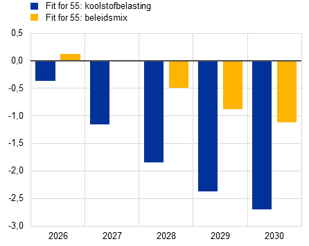 In de basisprojecties zijn geen andere EU-maatregelen opgenomen die deel uitmaken van het ‘Fit for 55’-pakket, aangezien de effecten daarvan niet werden geraamd of verwaarloosbaar bleken. Dit stemt overeen met de economische najaarsprognose 2025 van de Europese Commissie, waarin sprake is van een verwaarloosbaar effect van het grenscorrectiemechanisme voor koolstof op de inflatie op korte termijn.