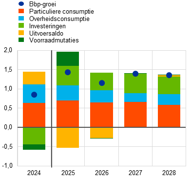Binnenlandse vraag | 0,7 | 1,6 | 1,4 | 1,4 | 1,3 | 0,1 | 0,2 | 0,1 |
