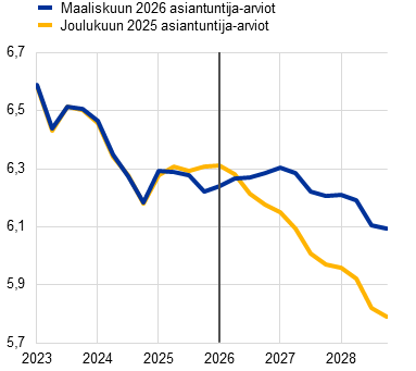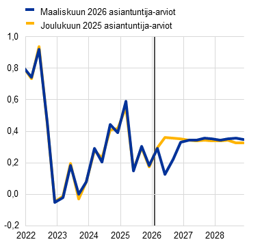 Euroalueen talousnäkymiä koskevat EKP:n asiantuntija-arviot, maaliskuu 2026