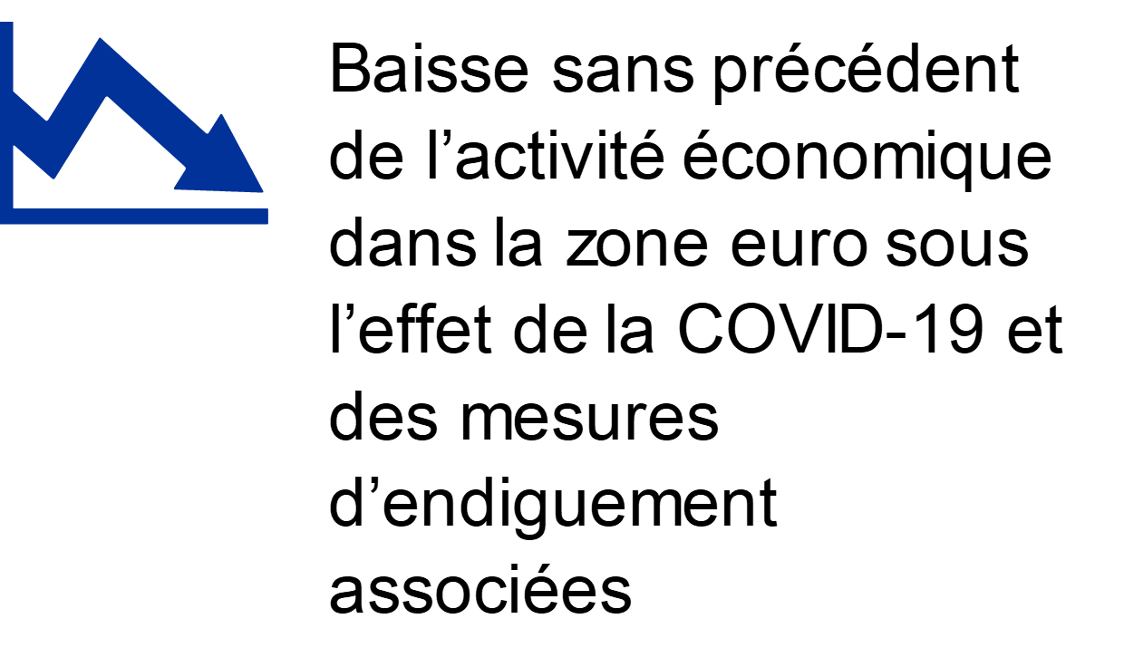 L’économie de la zone euro a été frappée de plein fouet, en 2020, par le choc d’une sévérité exceptionnelle causé par la pandémie de coronavirus (COVID-19). Les mesures de confinement mises en place et l’aversion accrue pour le risque ont entraîné une forte contraction de l’activité économique au premier semestre. Grâce, en partie, à la réaction vigoureuse et coordonnée des politiques monétaire et budgétaires ainsi qu’aux nouvelles encourageantes concernant le développement de vaccins, une stabilisation s’est cependant opérée au second semestre. Au total, le PIB de la zone euro a reculé de 6,6 % en 2020. L’inflation annuelle a quant à elle fléchi de 1,2 % en 2019 à 0,3 %, essentiellement sous l’effet de la baisse des prix de l’énergie, même si des facteurs liés à la pandémie ont également joué un rôle. Ainsi, les secteurs les plus affaiblis par la crise, comme les transports et l’hôtellerie, ont contribué au ralentissement de l’inflation au second semestre de l’année.