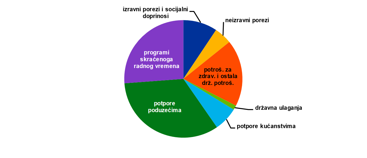 Najveći dio dodatne potrošnje odnosio se na izravne troškove rješavanja zdravstvene krize ili potpore kućanstvima i poduzećima.