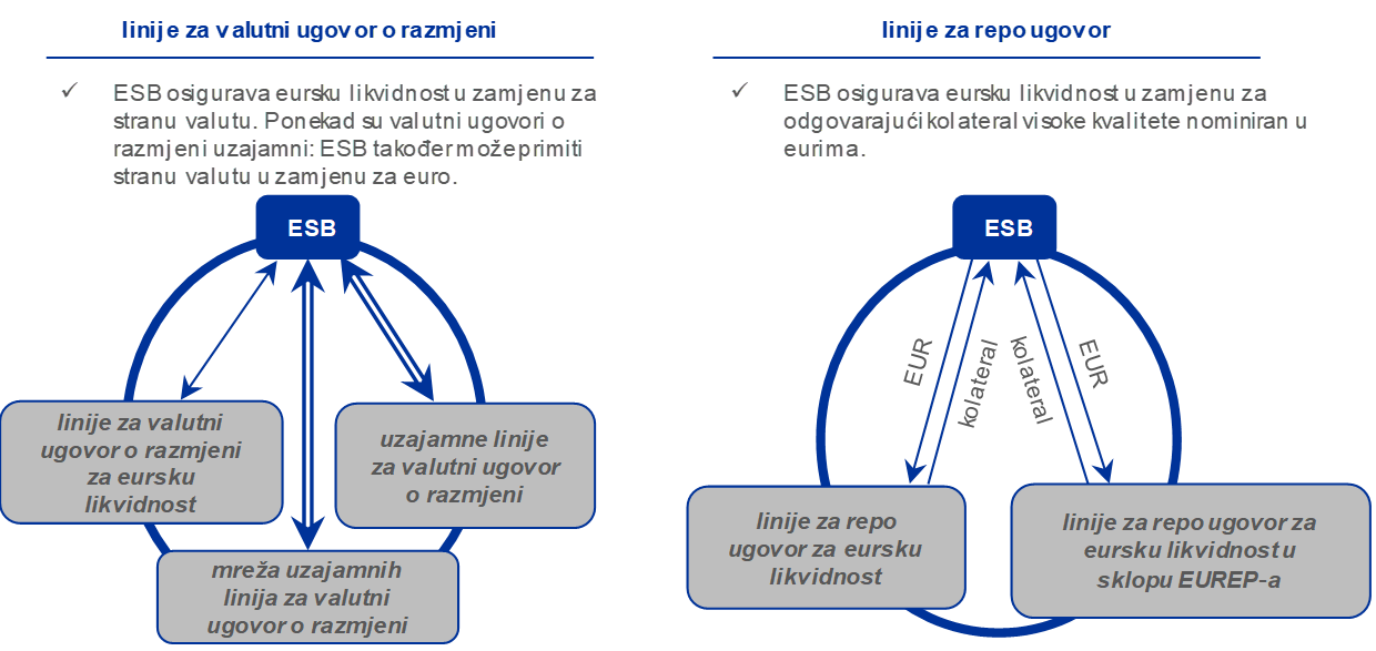 - Vidi i Panetta, F. i Schnabel, I., „The provision of euro liquidity through the ECB’s swap and repo operations ”, ESB‑ov blog, ESB, 19. kolovoza 2020.