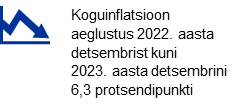 Euroala töötuse määr oli 2023. aastal keskmiselt 6,5%. See langes jaanuaris täheldatud 6,6%-lt märtsis 6,5%-le ja jäi aasta lõpuni üldjoontes stabiilseks. | Euroala koguinflatsioon oli 2023. aasta detsembris 2,9% ehk aeglasem kui 2022. aasta detsembris täheldatud 9,2%. Langus oli kõikide komponentide lõikes üha laiapõhjalisem. |