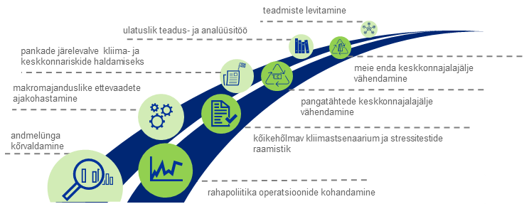 Neid küsimusi käsitletakse kliimastsenaariumides, mille on avaldanud finantssüsteemi keskkonnahoidlikuks muutmise võrgustik ehk rühm, mis koosneb 134 keskpangast ja järelevalveasutusest ning 21 vaatlejast, kuhu EKP ja Euroopa Keskpankade Süsteem aktiivselt panustavad.