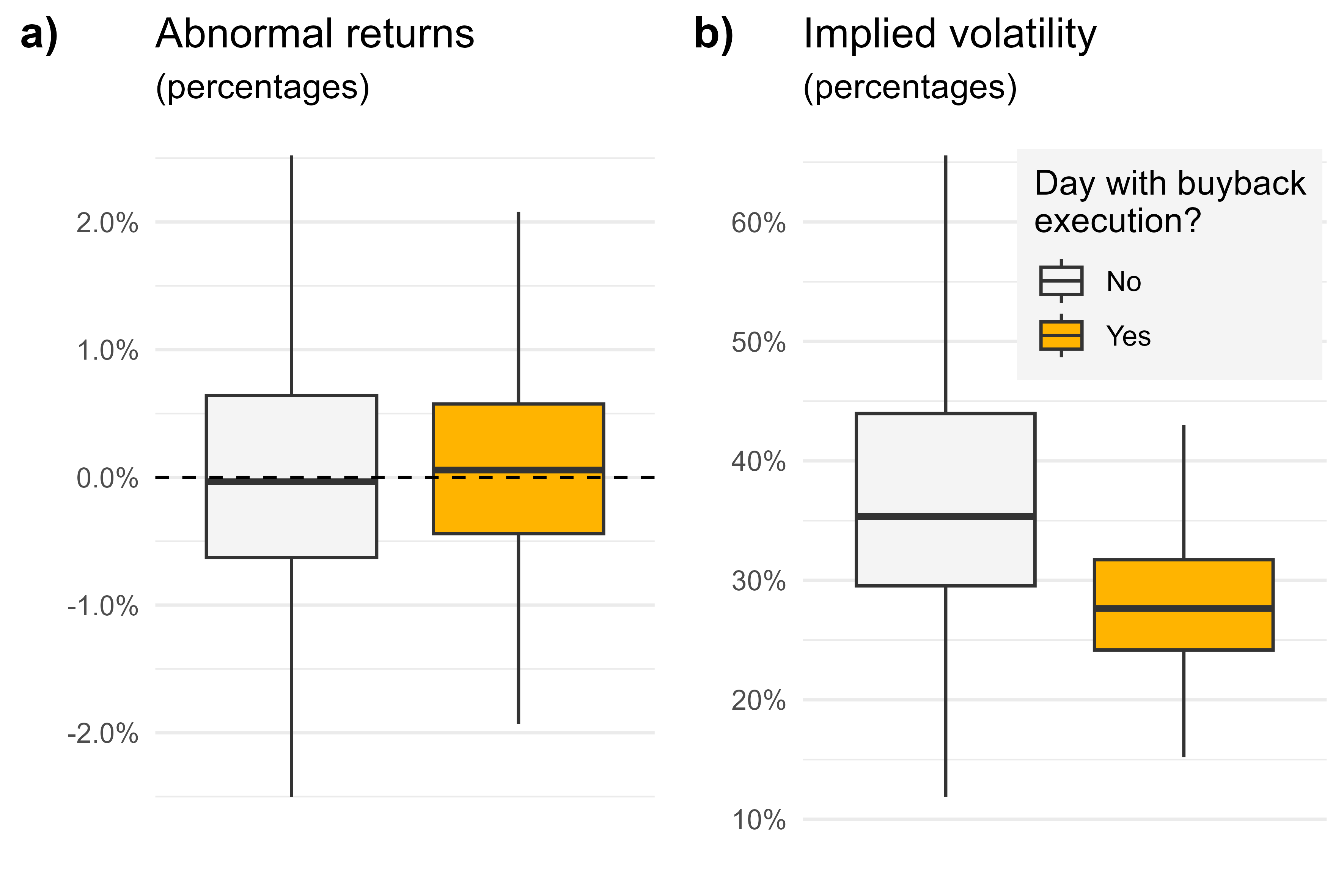 Distribution of abnormal returns and implied volatility on trading days with and without share buyback executions