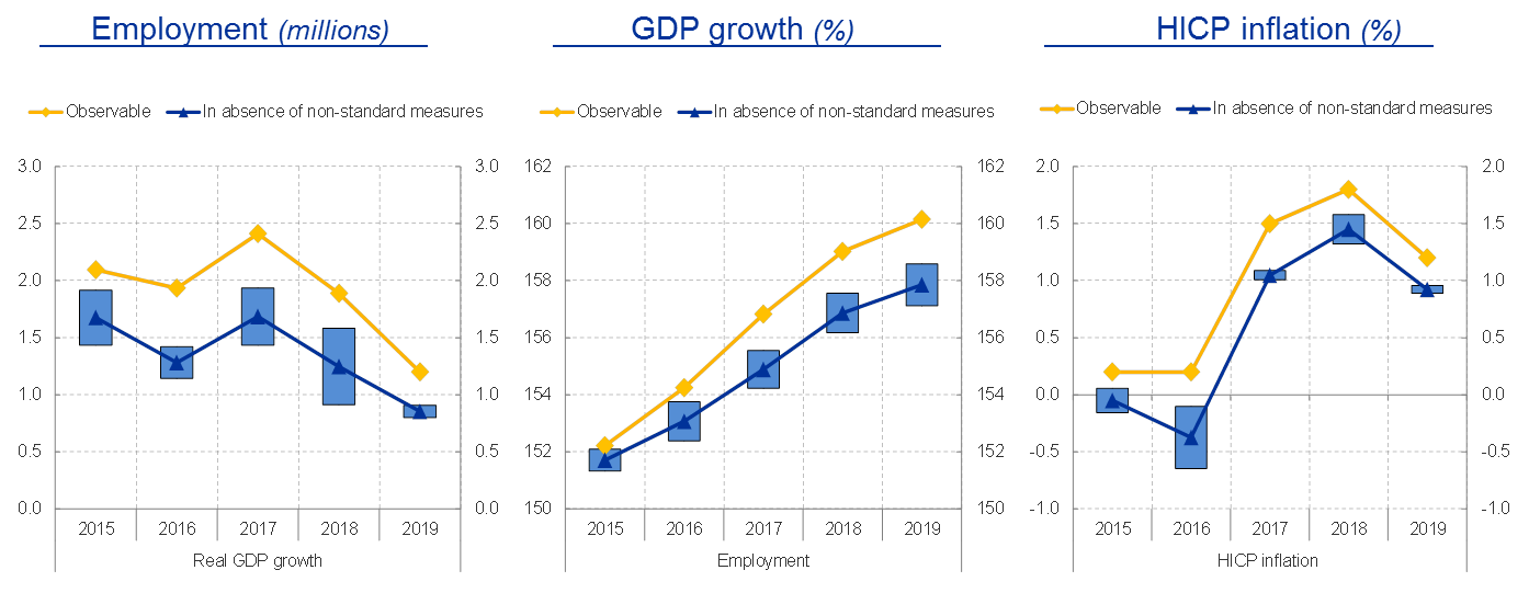 The use of these instruments has substantially loosened financing conditions, with beneficial effects for economic growth, employment and inflation.