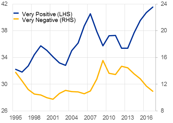 The share of euro area firms with very high profitability – here measured as firms displaying a ratio of profits over revenues of greater than 5% – has increased by around 10 percentage points, to 42%, since 1995. At the same time, the share of firms with very low profitability has declined.
