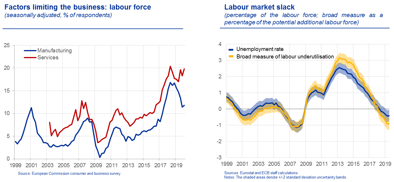 And the second caveat is that they are difficult to reconcile with both survey-based and hard data-based indicators of slack in the labour market, which even point to growing signs of labour shortages.