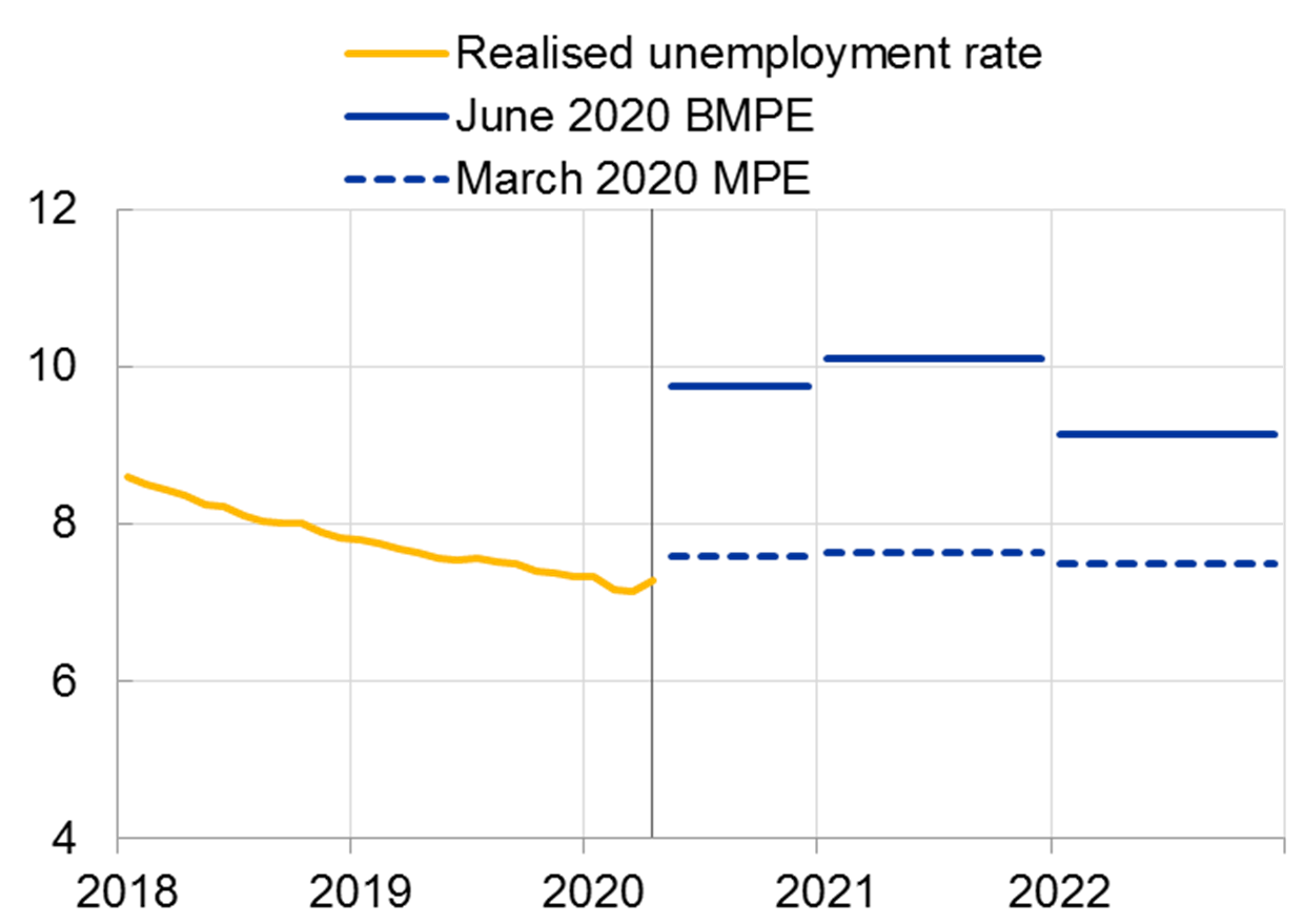 Die wirtschaftlichen Auswirkungen reichen vermutlich weit über das aktuelle Jahr hinaus. So dürfte die Arbeitslosenquote im Euroraum in zwei Jahren noch immer spürbar höher sein, als vor der Krise zu erwarten war (Grafik 2).