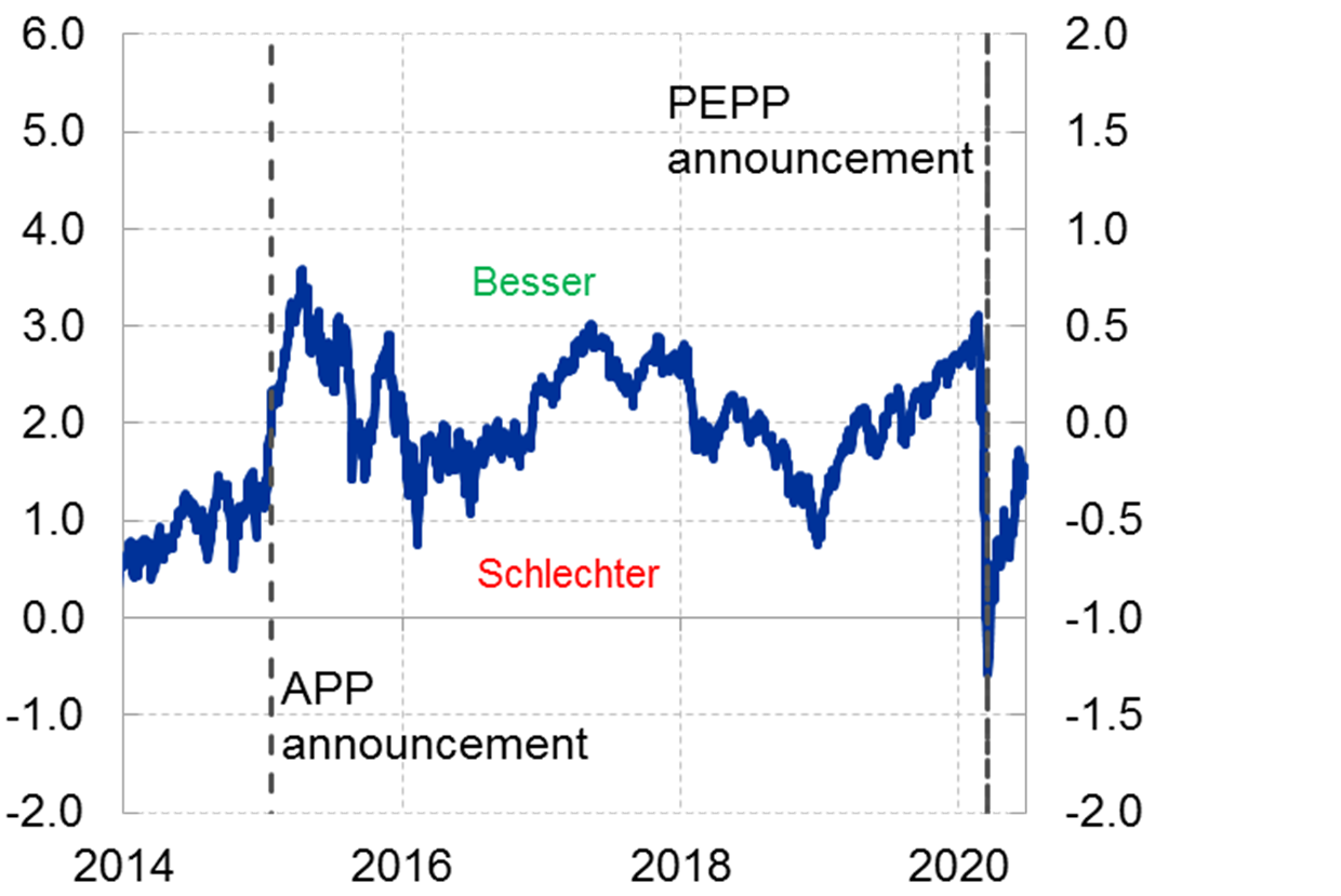 Und es gibt derzeit keine Anzeichen, die darauf hindeuten würden, dass unsere Maßnahmen darüber hinausgehen – dass sich Staaten also übermäßig am Kapitalmarkt aufgrund gefallener Renditen verschulden.