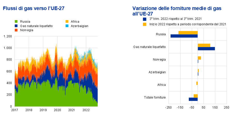 A mantenere condizioni di mercato assai tese hanno contribuito altri fattori – quali il forte calo della produzione di energia nucleare in Francia, la scarsità di vento all’inizio del 2022, il calo della produzione di energia idroelettrica dovuto alla siccità – che hanno amplificato l’impatto che la minore offerta di energia russa ha avuto sulle quotazioni di mercato.