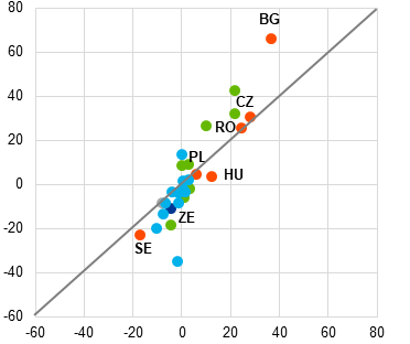 L’approche utilisée par la BCE dans le présent Rapport pour identifier les exceptions est conforme à celle qui a été suivie dans des éditions précédentes du Rapport sur la convergence. Dans certains cas, l’identification des exceptions peut s’avérer délicate. Cette même méthodologie peut donner lieu à des résultats légèrement différents, en fonction, par exemple, de la manière dont les facteurs exceptionnels sont interprétés.