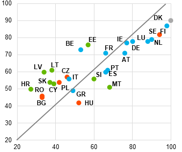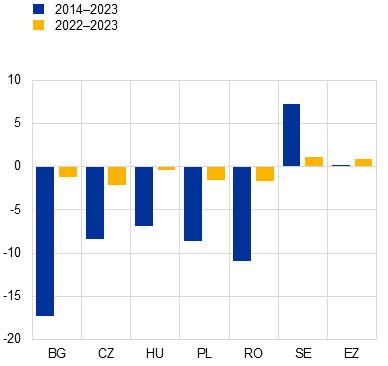 Tomēr šajā ziņojumā ECB neuzskata Beļģiju un Dāniju par izlecošajām vērtībām, jo tā neuzskata valstīm raksturīgās atšķirības starptautisko enerģijas cenu pārnesē uz iekšzemes enerģijas cenām par ārkārtas apstākļiem, ciktāl tās atspoguļo strukturālās atšķirības dalībvalstu enerģijas tirgos. To dalībvalstu, kuru rādītāji ir vislabākie, noteikšana 2024. gada jūnija Konverģences ziņojuma kontekstā neietekmē turpmāko Konverģences ziņojumu sagatavošanu.