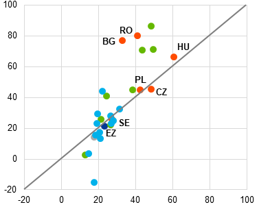ECB pieeja izlecošo vērtību identificēšanai šajā ziņojumā atbilst iepriekšējos ECB Konverģences ziņojumos izmantotajai pieejai. Dažos gadījumos izlecošo vērtību identificēšana var tikt veikta tuvākajā laikā. Tās pašas metodoloģijas izmantošana var sniegt nedaudz atšķirīgus rezultātus atkarībā, piemēram, no ārkārtas apstākļu interpretēšanas veida.