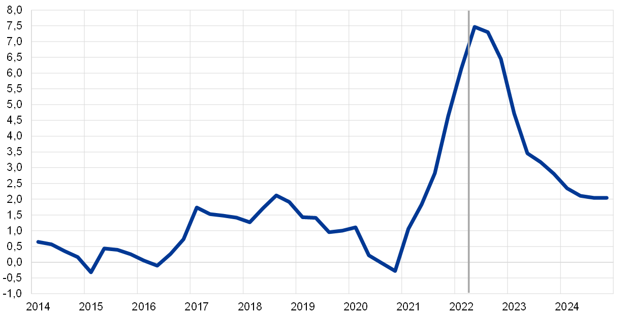 La forte poussée de l’inflation a intensifié le risque d’effets de second tour sur l’inflation par l’intermédiaire de revendications salariales accrues. L’accélération récente de l’inflation, vers des taux sans précédent dans l’histoire de la zone euro, est un facteur susceptible d’avoir une incidence importante sur les perspectives salariales, ce qui constitue la première étape d’éventuelles interactions de second tour sur les prix. Le présent encadré évalue les conséquences macroéconomiques d’une éventuelle modification de la relation entre salaires et prix due à la forte inflation[11].