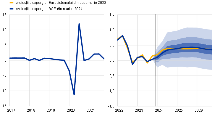 Proiecțiile experților BCE | Martie 2024 | 0,6 | 1,5 | 1,6 | 2,3 | 2,0 | 1,9 |
