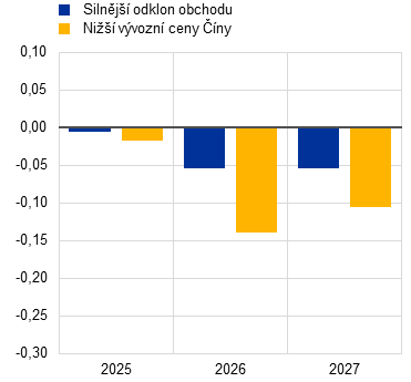 Makroekonomické důsledky silnějšího odklonu obchodu a nižších čínských vývozních cen pro eurozónu