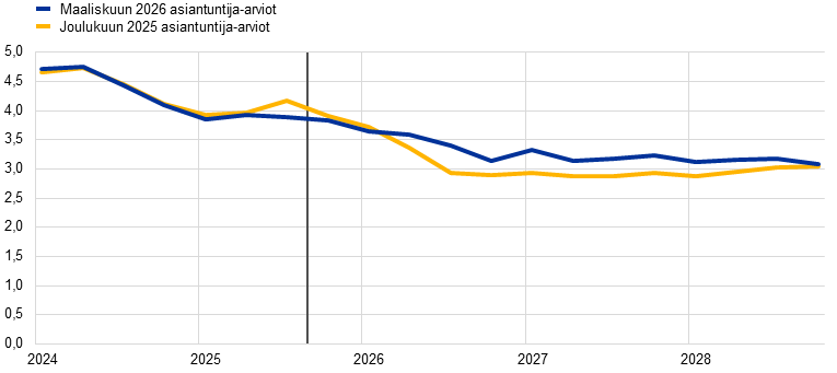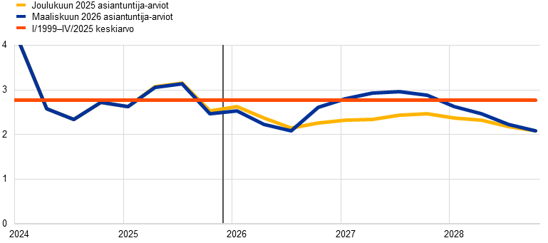 Euroalueen talousnäkymiä koskevat EKP:n asiantuntija-arviot, maaliskuu 2026