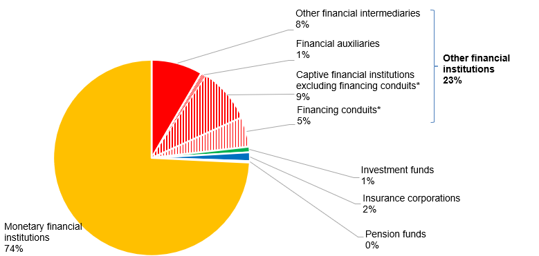 - As of October 2024, ECB quarterly financial accounts provide more details on loans by counterpart sector granted by other financial institutions (OFIs) and information on debt securities issuance of non-financial corporations (NFCs) via financing conduits. OFIs are creditors of 23% of loans granted to NFCs by financial sector