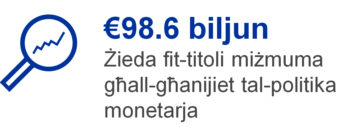 Fl-2020, it-titoli miżmuma għall-għanijiet tal-politika monetarja ġġeneraw madwar 66% tad-dħul nett tal-BĊE mill-imgħax.