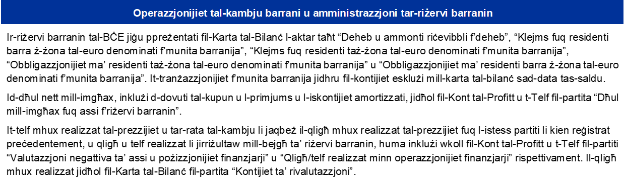 Tmexxija ta’ operazzjonijiet tal-kambju barrani u amministrazzjoni tar-riżervi barranin
