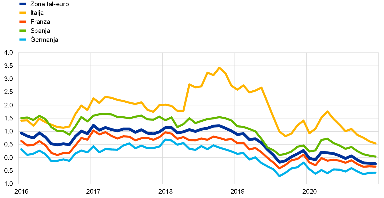 (perċentwali fis-sena; dejta fl-aħħar tax-xahar)