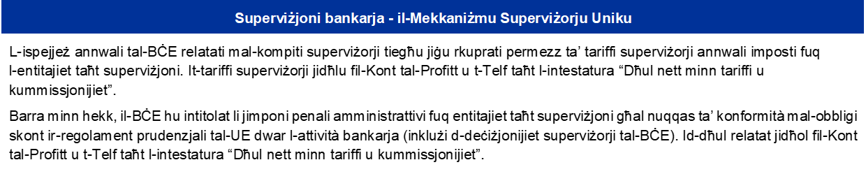 17. It-tariffi superviżorji huma inklużi fi “Dħul u spejjeż oħra” (Ċart 13).