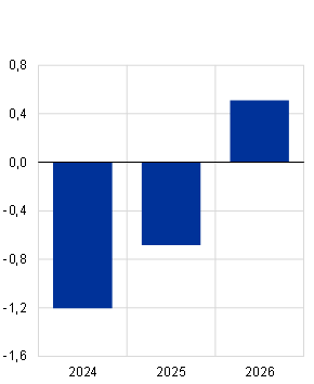 La croissance de l’investissement des entreprises devrait rester atone en 2024 en raison de conditions de financement restrictives, accusant ainsi un retard par rapport à l’expansion de la demande, avec une reprise prévue en 2025-2026 et reflétant la dissipation des effets défavorables des conditions de financement et le soutien apporté par le programme « Next Generation EU » (NGEU). Après avoir enregistré une progression au troisième trimestre 2023, l’investissement des entreprises devrait se contracter au quatrième trimestre et stagner globalement au premier trimestre 2024, dans un contexte de faiblesse de l’activité économique et de conditions de financement et de crédit restrictives. Selon les estimations, l’effet modérateur exercé par le durcissement des conditions d’octroi des prêts bancaires ressortant des projections de décembre 2023 sur l’investissement des entreprises aura été le plus significatif en 2023, un frein encore marqué subsistant en 2024 et 2025. La dissipation de ces effets défavorables, le rebond généralisé de la demande intérieure et extérieure ainsi que la transition écologique et numérique, soutenue par les fonds du programme NGEU, devraient contribuer à une reprise de l’investissement des entreprises à moyen terme.