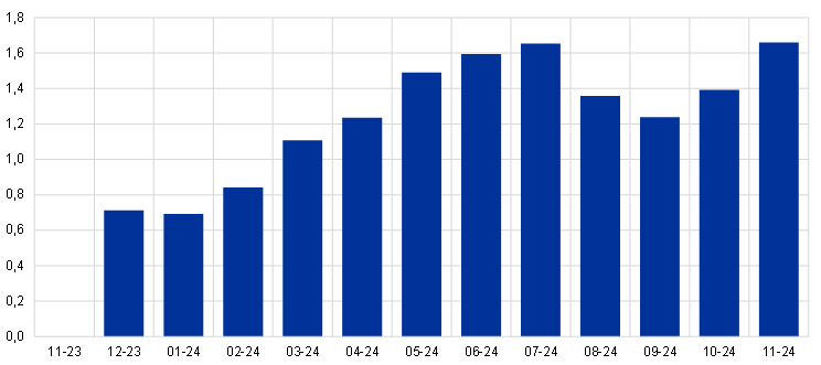 De verwachting is dat de bedrijfsinvesteringen in 2024 zwak groeien als gevolg van krappe financieringsvoorwaarden, en dus achterblijven bij de toename van de vraag. Herstel wordt verwacht in 2025-2026, als gevolg van het wegebben van de negatieve impact van de financieringsvoorwaarden en gesteund door het Next Generation EU-programma (NGEU). Na een stijging in het derde kwartaal krimpen de bedrijfsinvesteringen naar verwachting in het vierde kwartaal van 2023 om vervolgens in het eerste kwartaal van 2024 min of meer te stagneren doordat de zwakke economische bedrijvigheid, de krappe financieringsvoorwaarden en de restrictieve kredietvoorwaarden de investeringen drukken. Het temperende effect van de krappere bancaire kredietvoorwaarden op de bedrijfsinvesteringen is volgens de projecties van december 2023 naar schatting het sterkst geweest in 2023, terwijl voor 2024 en 2025 nog steeds een aanzienlijke rem wordt voorzien. Het wegebben van deze negatieve gevolgen, evenals een breed herstel van de binnenlandse en buitenlandse vraag, en de groene en digitale transitie, ondersteund door NGEU-middelen, leveren naar verwachting een bijdrage aan herstel van de bedrijfsinvesteringen op middellange termijn.