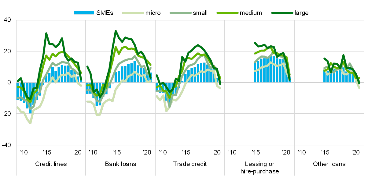 For the first time since 2009, euro area SMEs reported an improvement in access to public financial support (14%, from -3%), an indication that the initiatives by a number of governments to provide public guarantees for bank loans during the COVID-19 pandemic have fed through to these enterprises.