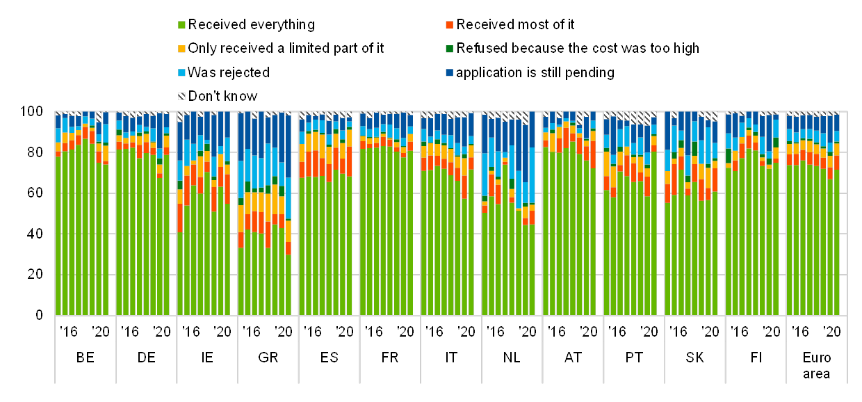 Base: SMEs that had applied for bank loans (including subsidised bank loans), credit lines, or bank or credit card overdrafts. Figures refer to rounds 16 (March 2017-April 2016) to 23 (April-September 2020) of the survey.
