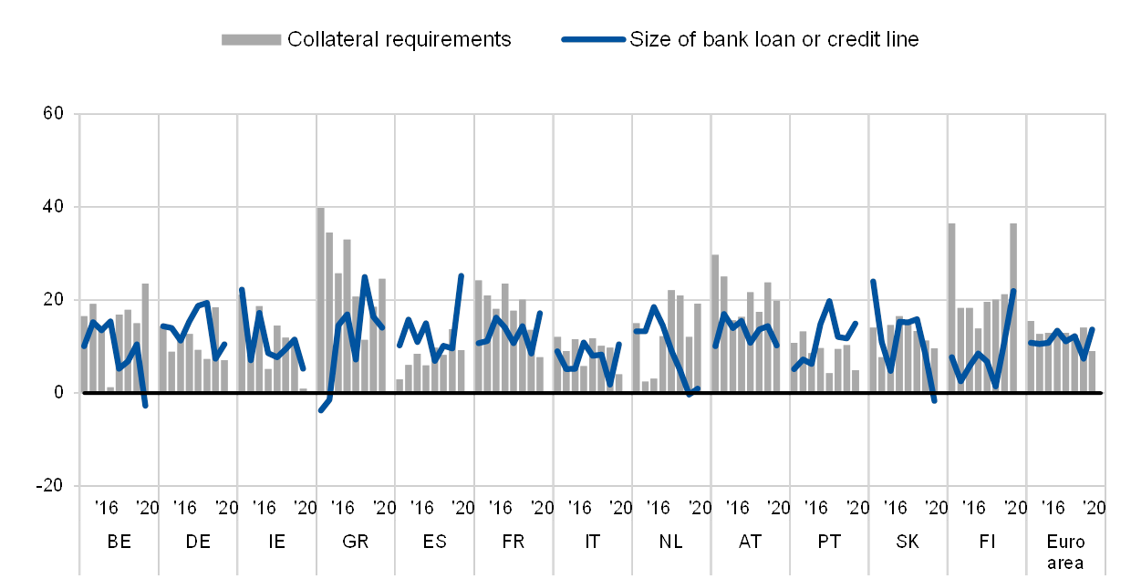 Change in non-price terms and conditions of bank financing for SMEs across euro area countries
