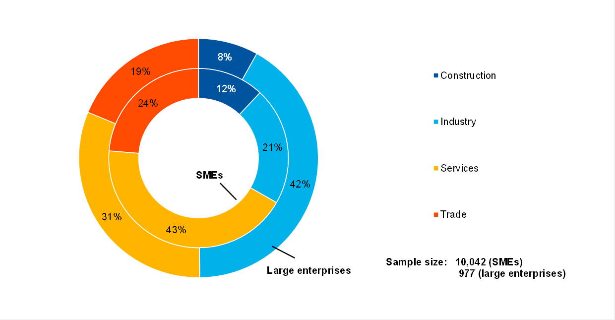 Nevertheless, large and medium-sized enterprises conveyed a more negative view of the business environment influencing their access to external funds than SMEs. A net 48% of large enterprises and 41% of medium-sized enterprises reported that the general economic outlook might have become an impediment to their access to external finance.