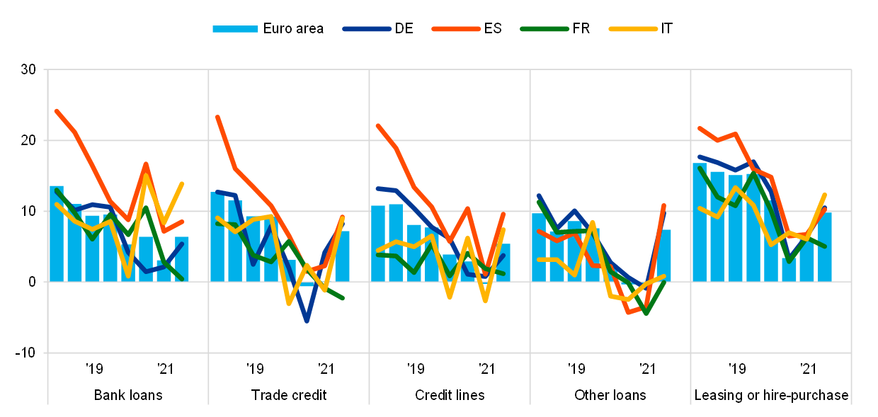 9. See the note to Chart 13. Only survey respondents who report that a particular financing instrument is relevant for their enterprise are asked about their need for that source of financing.