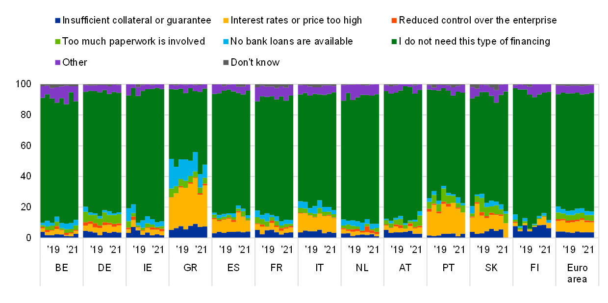 Base: Enterprises for which bank loans (including subsidised bank loans) are relevant. The figures refer to rounds 18-25 of the survey (October 2017-March 2018 to April 2021-September 2021).