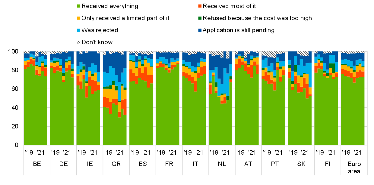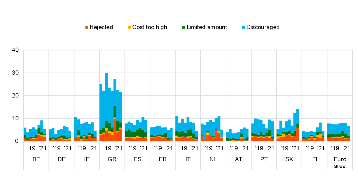 Base: SMEs that had applied for bank loans (including subsidised bank loans). The figures refer to rounds 18-25 of the survey (October 2017-March 2018 to April 2021-September 2021).